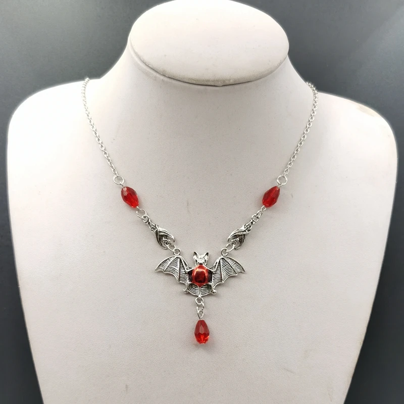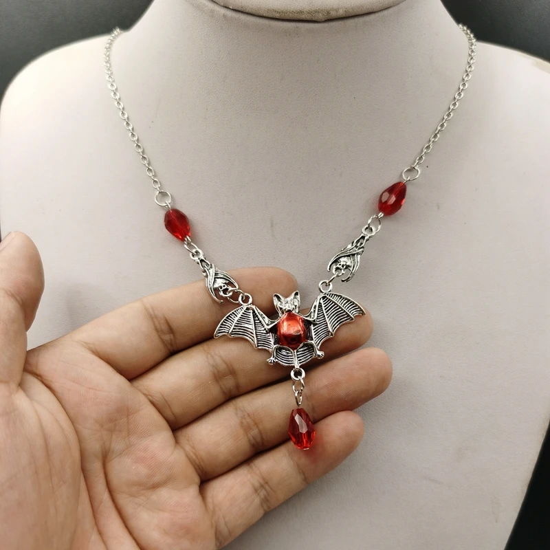 Stunning Gothic Vampire Bat Necklace Red Crystal Beads Vampire Bat Necklace Gothic Jewelry, Statement Necklace,